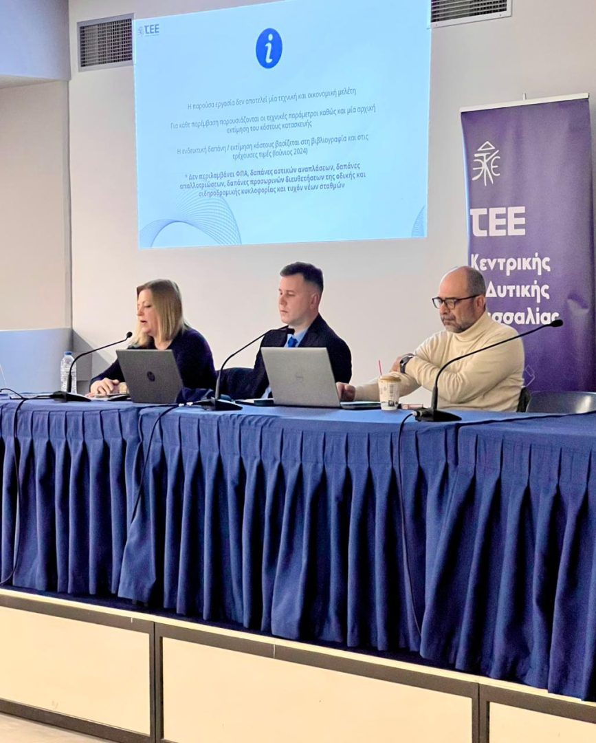 Λάρισα, 05 Δεκεμβρίου 2025 – Άλλη μια σημαντική πρωτοβουλία πραγματοποιήθηκε στην Αίθουσα εκδηλώσεων «Ιωάννης Βαρνάς» του Περιφερειακού Τμήματος Κεντρικής και Δυτικής Θεσσαλίας του ΤΕΕ, η οποία αφορούσε στην παρουσίαση του έργου της Ομάδας Εργασίας του Τμήματος με τίτλο: «Βελτιστοποίηση της ασφάλειας μέσω ανάπτυξης προτάσεων που θα προκύψουν από τη διερεύνηση και αξιολόγηση λύσεων για το πρόβλημα της διέλευσης σιδηροδρομικών γραμμών εντός του αστικού ιστού της Λάρισας, των Τρικάλων και της Καρδίτσας».