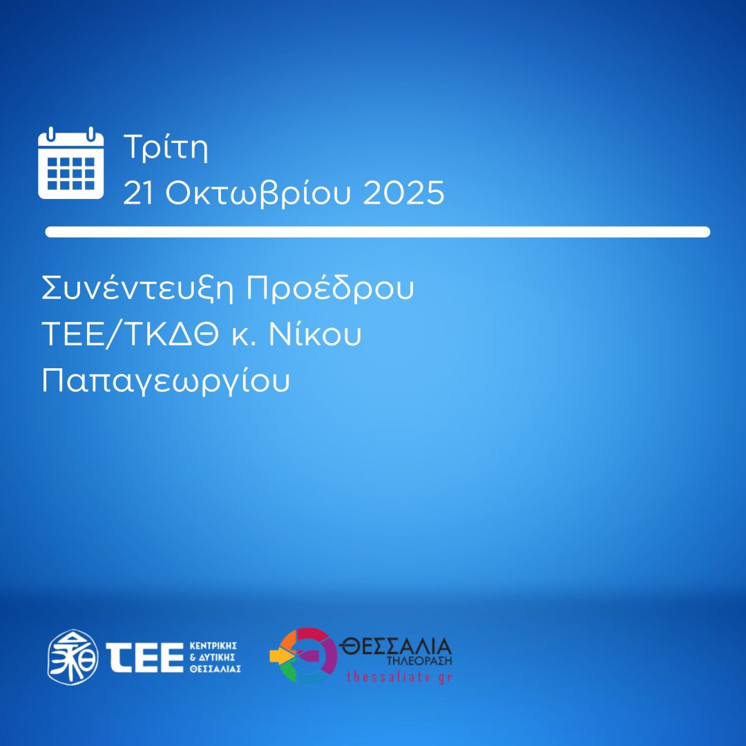 21-10-2025 | Συνέντευξη Προέδρου ΤΕΕ/ΤΚΔΘ στο “Θεσσαλία TV”