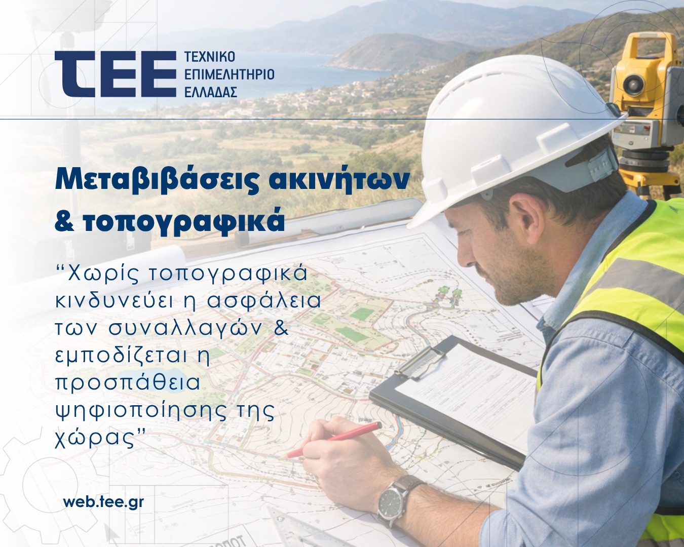 Το ΤΕΕ αναδεικνύει ότι τυχόν κατάργηση του τοπογραφικού σε μεταβιβάσεις ακινήτων διακινδυνεύει την ασφάλεια των συναλλαγών και εμποδίζει την προσπάθεια ψηφιοποίησης της χώρας